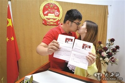 当然,更多的人是左挑右选才选了5月20日这个好日子来领证的。王先生和女朋友张小姐都是90后,王先生告诉记者,“我俩是朋友介绍认识的,谈了一年了,在选择哪天领证时,挑了好几个日子,最终她决定520这天领证,所以我们就来了。”