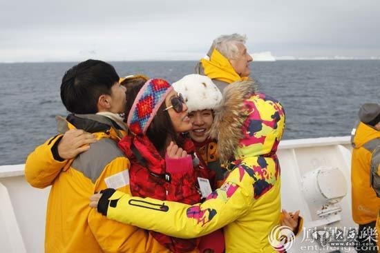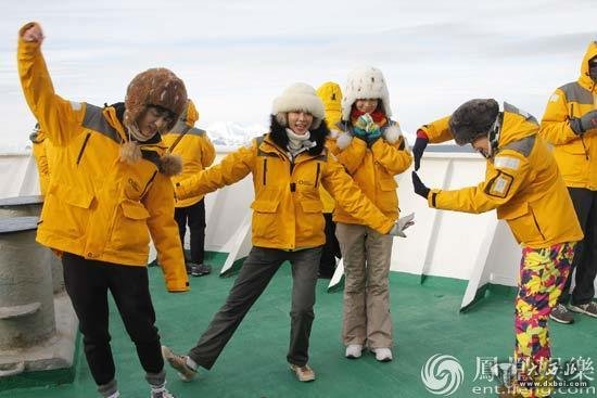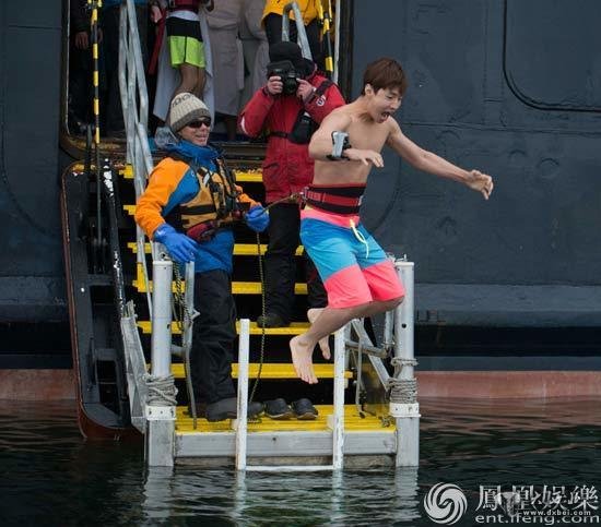 “花样团”南极之行今晚起航。2天2夜海上之行,等待他们的除了极具危险的十级风浪,还有南极传统项目——冰泳挑战。看到老外一个个兴奋地跃入海中,却都又一溜烟尖叫着爬回船上。披着浴袍在船口等待的姐姐们瑟瑟发抖,再次犹豫着不敢前行,但踊跃冬泳的还不乏70的老人。而弱不禁风的志玲姐姐却让大家惊叹地张大嘴巴,寒冷如刀割的冰水中,林志玲无惧极冻,悠然自得地换起泳姿,在海中坚持了长达30秒之久,让所有人都甘拜下风!