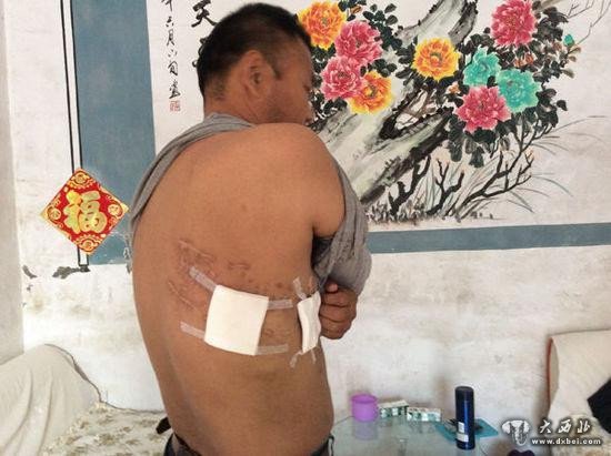他说自己身上的两个伤口还没有愈合,时常疼痛。