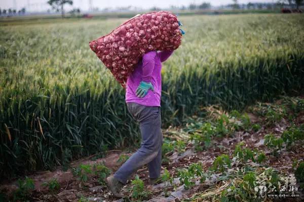 2016年5月,蒜农的房前屋后堆满了用红色网兜扎好的蒜头,大蒜种植和收采需要大量人力,目前还没有机械能够替代完成。因为种植面积大,产值高,蒜农需要雇人完成挖蒜、筛蒜、搬运等工作。天气渐渐炎热,这些工作需要在一个月内完成,大量劳工像候鸟一样从山东、河南、安徽等地来到金乡,密集地劳作一个月后离开。