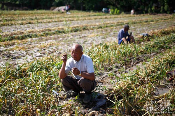 劳工们常常五六个人聚在一起,帮助一家农户挖蒜,蒜农以每亩280元-320元不等的价格支付报酬。每人平均一天赚100元到150元,一些体力强壮的人有时能挣到200元以上。