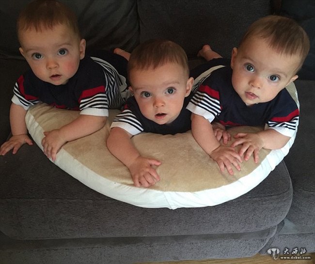 国际在线专稿:据英国《每日邮报》5月29日报道,英国利物浦一位妈妈在自然受孕的情况下,喜获同卵三胞胎,全部为男孩。据称,同卵三胞胎出现概率为两亿分之一。现在10个月大的他们长得可爱极了,圆圆的小脸蛋让人禁不住想摸一摸。