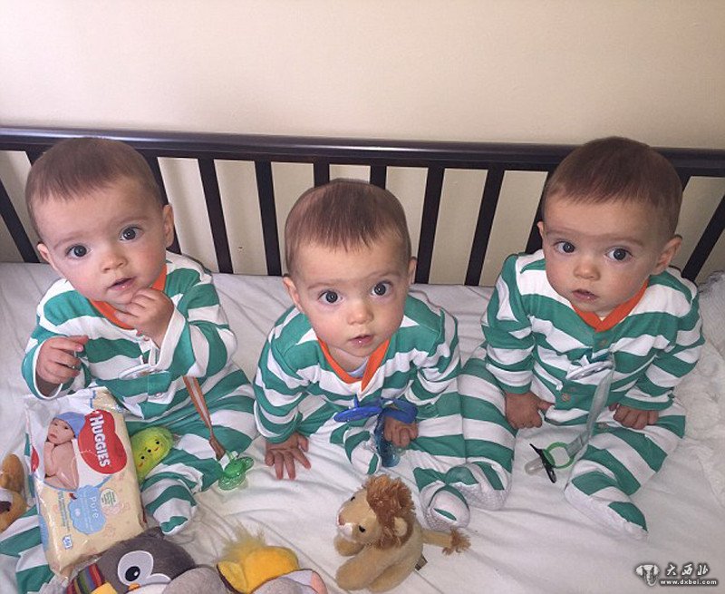 经过DNA鉴定,三个小家伙属于罕见的同卵三胞胎。