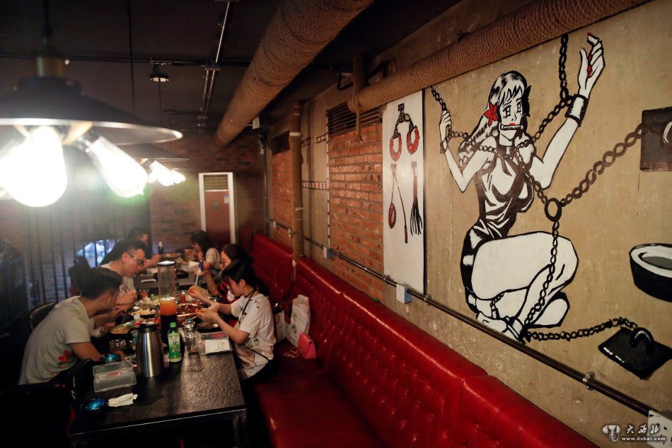 这家主题与众不同的餐厅名为“壳儿”,体现了中国人特别是年轻人对性问题态度的极大转变。图为穿着女性身体围裙的就餐者。