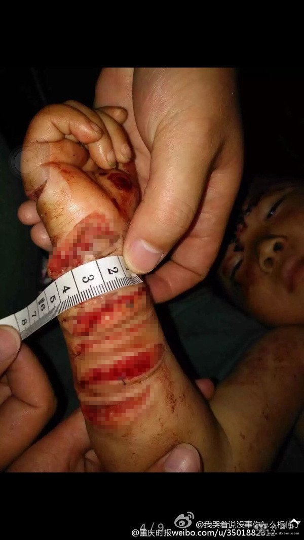 6月1日,重庆奉节县冯坪乡明堂村一名3岁留守女童小容(化名)四肢被人砍伤。 @重庆时报 图