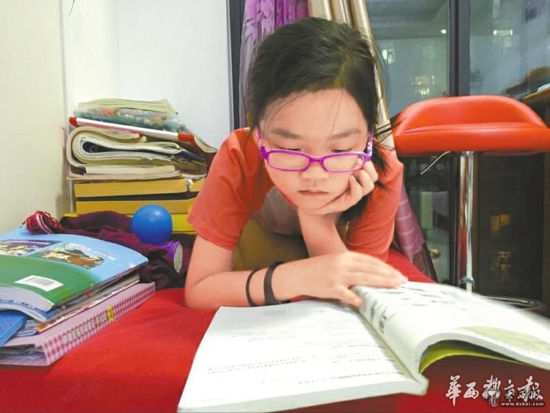 现在,8岁半的她已经在家自学初一下的教材了。