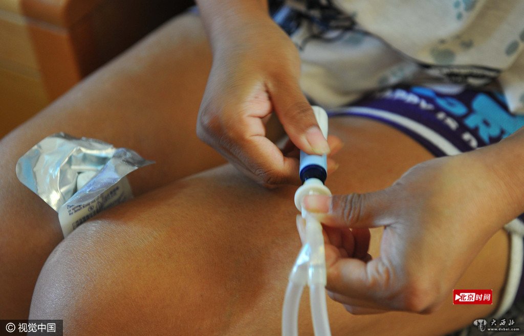 两公斤的透析液通过这根管子进入身体。这样的日子已持续整整一年。对于廖艳而言,生的希望,就是换肾。如今,远在江西的姐姐愿意捐出一个肾,希望就在触手可及的前方,可高昂的医药费,把一家人难住了。