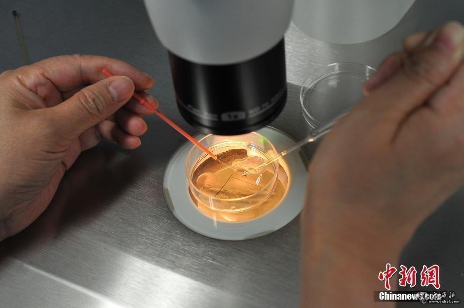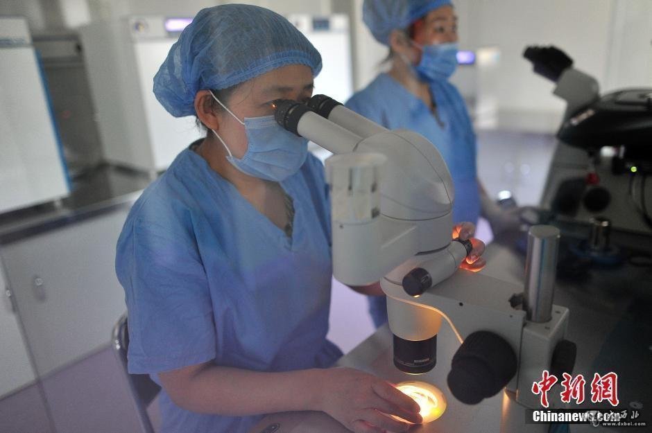 图为医护人员收集医生取出的卵子。