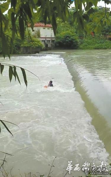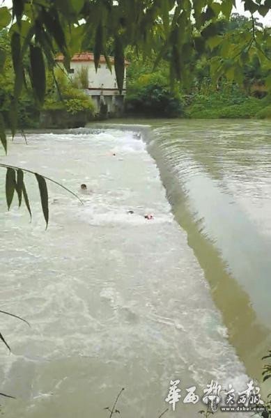 被冲上岸的喻春祥精神和体力都已经濒临崩溃,他本能地爬起来往坝上跑去,眼看着于强和肖军依次被冲下来,一直被冲到距离大坝两三百米的岸边,但已经没了呼吸。他不死心,在120到来之前,拼命地给老友做急救,而在这个过程中,于强年仅12岁的儿子小巍,不仅亲眼目睹父亲罹难,还给父亲做了人工呼吸。图为事发现场,两人在水中时起时伏。