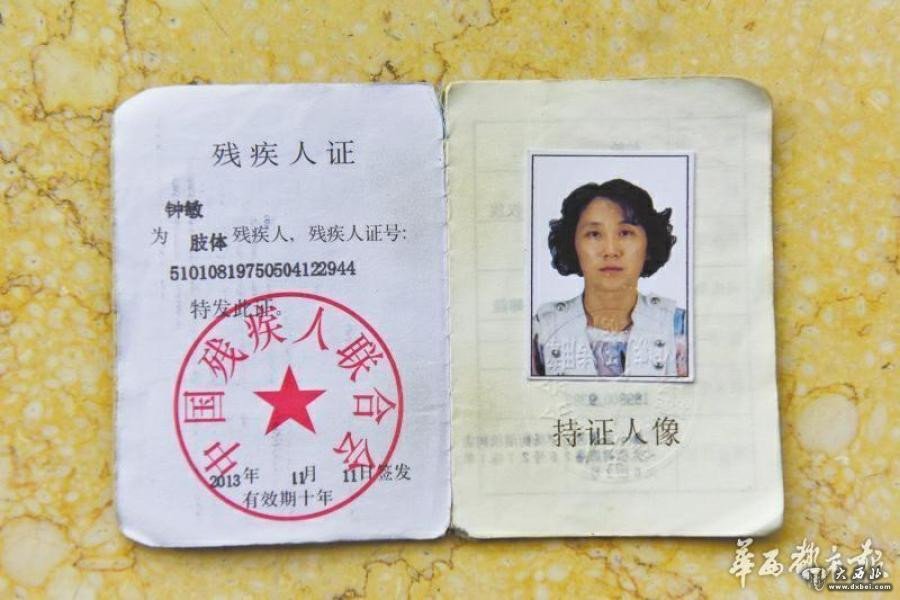 更让人担心的是于强的妻子钟敏。3年多前,钟敏查出患上脑萎缩。这是难以痊愈的慢性病,随着病情慢慢加重,有可能逐渐失去生活自理能力。另一名死者肖军的第二个孩子,6个月后也将呱呱坠地,却永远失去了父亲。“他是为了救别人而遇难,即使对方是朋友,也能算见义勇为吧。”6月11日下午,于强的大舅子钟小勇提出,能不能为于强申报一个“见义勇为奖”。钟小勇说,评“见义勇为”不为奖金,只为了告慰家人。图为于强妻子的残疾证。