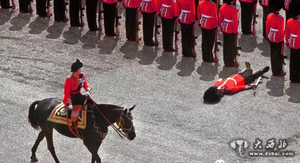 士兵晕倒在女王的骏马前……