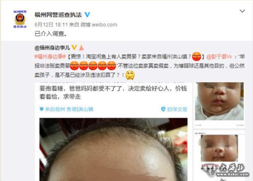 6月12日下午,微博网友@彭于晏Vv爆料称,有人在淘宝闲鱼网非法贩卖男婴,随微博爆料还发出了2张截图。
