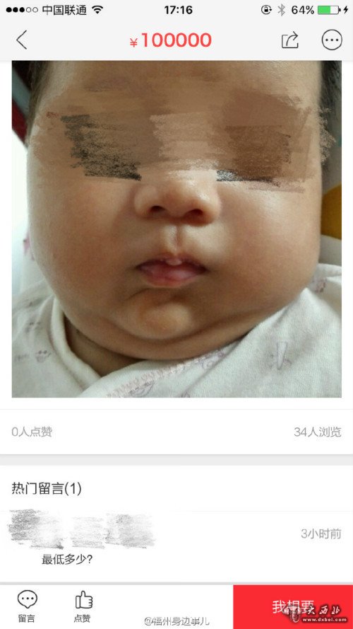 日前,有网友微博爆料称,淘宝闲鱼网上一名来自于福州洪山镇的卖家,准备出手转卖一名男婴。