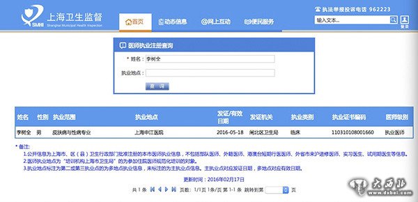 在上海申江医院办公室,该院人事部工作人员提供了李树全的医师执业证书。澎湃新闻记者通过上海卫生监督所官网查询发现,李树全的医师执业证书的颁发日期为5月18日。但是,李树全将黄晶的病诊断为尖锐湿疣是在4月29日,此时他还没有获得医师执业证书。根据相关规定,李树全涉嫌无证行医。