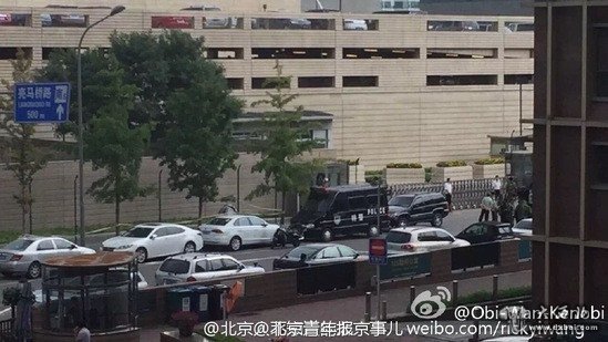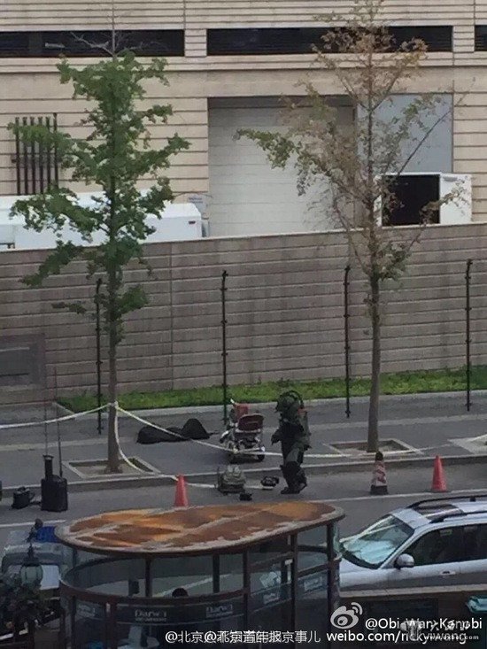@北京青年报:【#美国驻华使馆门前发现疑似爆炸物#】今天下午,美国驻华使馆门前发现可疑爆炸物。多名现场网友拍摄的照片显示,多名特警在现场聚集,身穿防爆服的排爆人员正在处理地上的包裹。据现场目击者称,疑似爆炸物发现于下午3时左右,在一辆三轮摩的上面发现的。北京青年报记者了解到,目前警方已经处置完毕,包裹并不是爆炸物,而是衣服,稍后将会就此事发布通报。