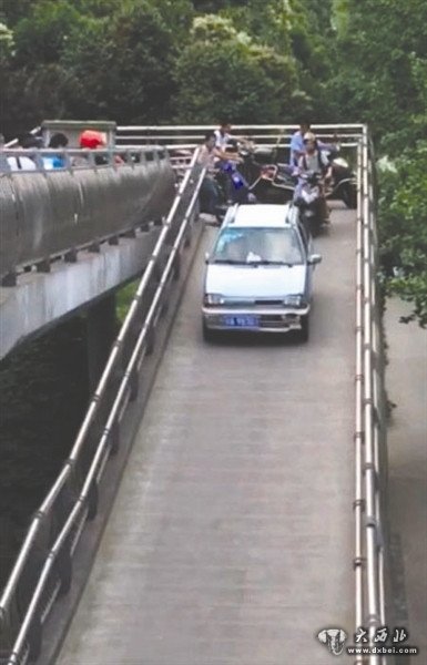 6月15日消息,6月13日晚,在四川成都三环路草金立交桥旁竹韵天府小区,一辆不知道是迷路了还是抄捷径的奥拓小车,竟开上了小区外的一座横跨三环路的人行天桥,在狭窄的道路上不停转换方向。昨日,成都商报记者从交警一分局了解到,目前,交警已经介入调查。