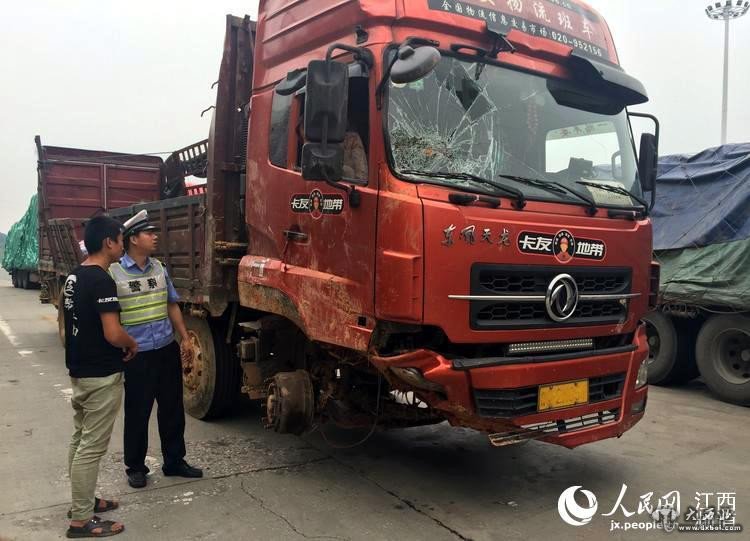 人民网南昌6月16日电(时雨)汽车没了两前轮怎么办?肯定是不能开送进修理厂了!不过,一辆没了前轮的山东牌照大货车却在高速公路跑得欢快,幸好被江西高速交警紧急叫停才未酿成灾祸。