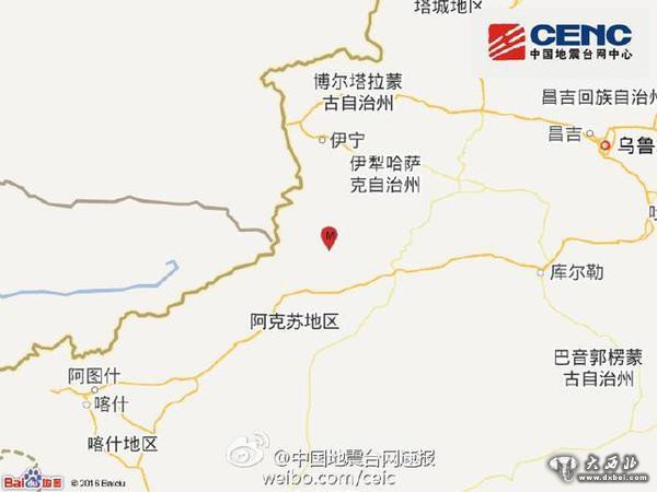 新疆拜城县发生4.5级地震 震源深度15千米