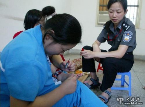 6月25日清晨6点,武汉市第一看守所内,女警和普通女犯正帮毒贩死囚李菊花涂抹鲜红的脚趾油。