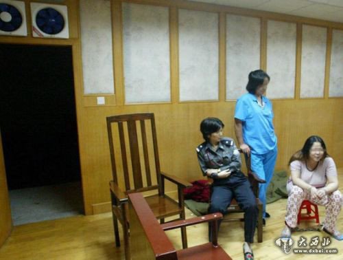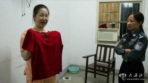 6月24日晚,武汉市第一看守所临时囚室内,毒贩死囚何秀玲在女狱警的陪同下和普通女囚在一起。