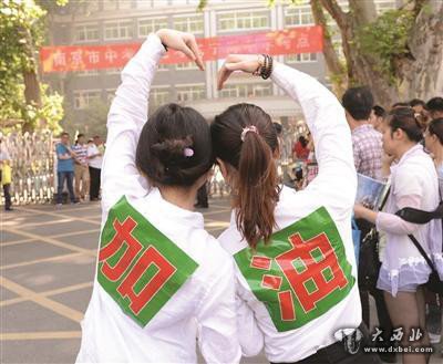 助威团背上贴“加油”给考生鼓劲。新华报业视觉中心记者 吴俊 摄