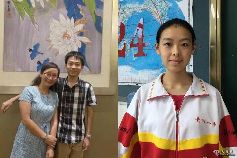 左图:贵州理科裸分状元周炜迪(右)和班主任;右图:贵州文科裸分状元林中文。