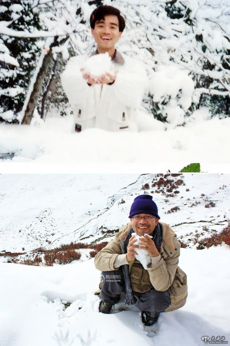 上图是大一的时候在安徽拍的,那是我第一次看到下雪,别提多开心了,赶紧去相馆租了个傻瓜相机在校园里狂拍起来。下图是现在的我,二十年后来内地看雪,我已步入中年。虽然容颜渐老,头发也不再浓密,但我欣慰自己保持着一颗童心。作者:林松