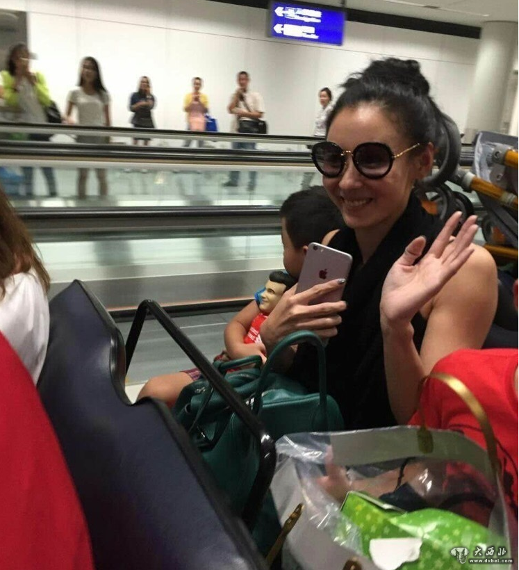 张柏芝向粉丝挥手打招呼,两个儿子分坐两边。