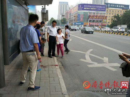 下午2时,记者来到事发的公交站看到,地上还有两大摊的鲜血,受伤男子已经被送往医院。据目击者称,受伤的男子大约有五十多岁,身着白色上衣、灰色裤子,当时他独自一人在等车。