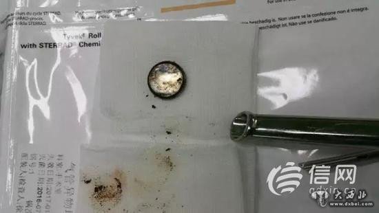“虽然电池被顺利取出,但是此时的电池表面已经发黑,局部食道黏膜已经红肿糜烂,且有黑色异物残留,手术医生用蒸馏水反复冲洗半个多小时才将残留的异物冲洗干净,患儿术后还需进一步治疗,是否出现严重并发症还需观察。”