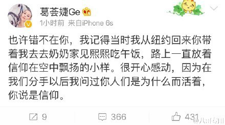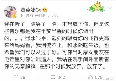 葛荟婕微博原文: