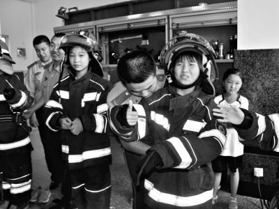 “叔叔,这是干什么用的?” 乐乐拿起一个面罩转了几圈。“这个叫防毒面具,可以防止毒气、烟雾进入鼻子和嘴巴。”一名消防员战士告诉乐乐,在发生火灾时,为了防止毒气、烟雾吸入口中,小朋友们可以用湿毛巾代替,把湿毛巾对折捂住嘴巴和鼻子。“毛巾打湿后最好稍微拧一下,让毛巾不滴水,这样防毒的效果最好。”