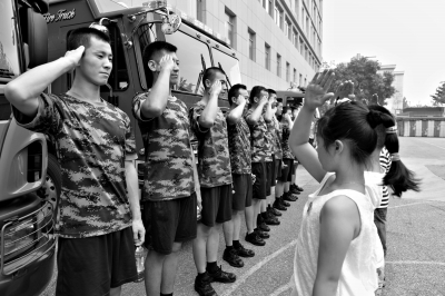 在朝阳区公安消防支队左家庄消防中队,乐乐在“北京少年儿童消防嘉年华”活动中,第一次拨打了火警电话。