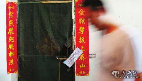 事发房子有两道门,一张大“福”字张贴在里面的木门上,外面是防盗门,里外两道门均被贴了封条。