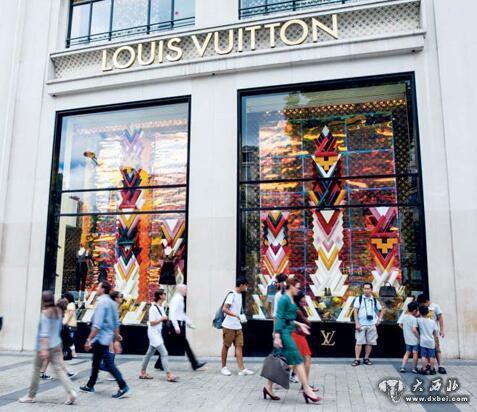 图片说明:人们正在走过法国巴黎某名品店门前