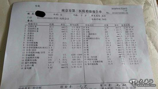 6月16日,他们带孩子去徐州二院检查,血液检查结果存在异常。