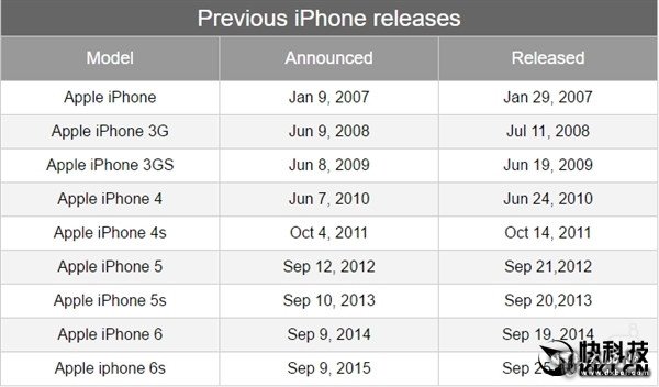 历届iPhone的发布时间,看起来9月7日还是很靠谱的。