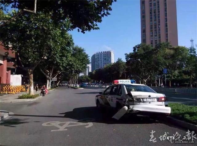 据现场西山公安分局东陆桥派出所民警介绍,事发时他们正在出警,宝马车突然就撞了上来了,其中一辆警车被撞的原地调头。