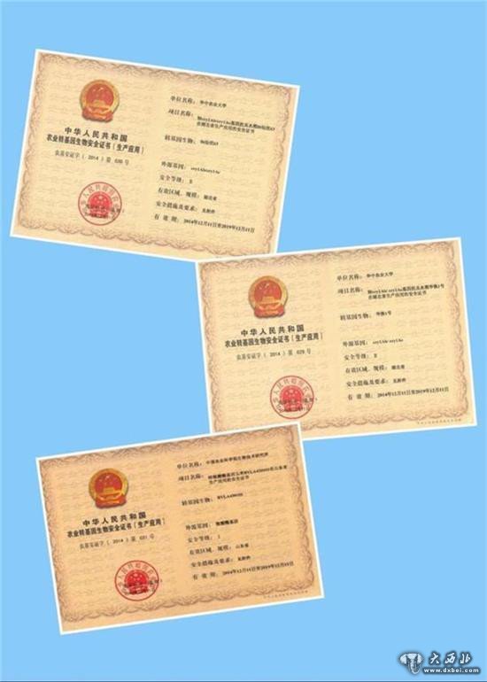 三张转基因主粮安全证书续期到2019年12月11日