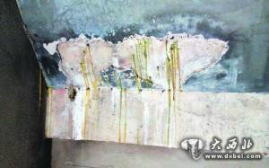 在房子北侧,王大永还发现南侧用做卫生间的房间顶棚是歪的,东侧比西侧要低一些。刚入住时看不出顶棚歪,如今用肉眼就能看到顶棚是歪的。