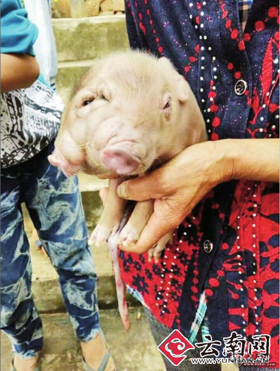 8月16日,弥渡县苴力镇力六山大营村刘翠芬家的母猪产下了一头有两个脑袋的棕色猪崽,长着四只眼睛、两张嘴,并且两张嘴都会吃东西,很是稀奇。17日上午,记者来到刘翠芬家一探究竟。