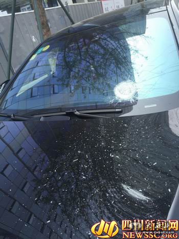 据曾先生介绍,奔驰轿车是公司的,是一辆新车,才开了10个月。今天上午,他独自一人从华阳开车到吉泰路附近办事。当车至吉泰路的一个红绿灯处时,他的电话响了,为了行车安全,曾先生将车停在路边,准备打完电话再继续行车。“我连电话都还没有打完,就听到咚一声,一个东西掉在副驾驶前方的挡风玻璃处,吓得我赶紧挂了电话。”所幸,挡风玻璃没有被砸穿,曾先生没有受伤。