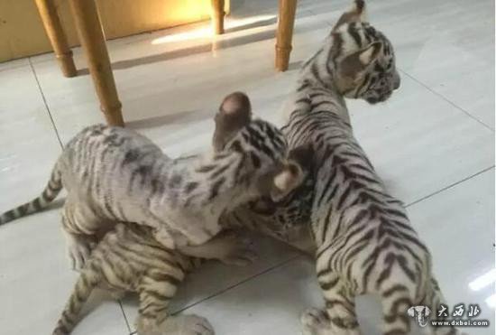 3只小老虎为“白化孟加拉虎”,是国家一级保护动物。