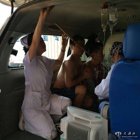 四川新闻网宜宾8月23日讯(记者 李春雨)昨日下午,宜宾市宜宾县一村民在才在树上采摘桂圆时,不小心摔下,被一根竹竿从左颈部插入,后被紧急送医。在将伤者转往成都华西医院的过程中,为防止病人遭遇二次伤害,宜宾市第二人民医院护士长黄敏单膝跪地三个多小时,帮助病人护住颈部,保持平衡。