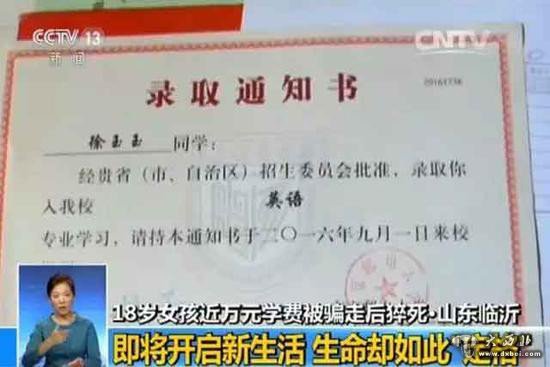 徐玉玉是今年的应届高考生,前不久,她收到了南京邮电大学英语专业的录取通知书,即将踏入大学校园,开始新的生活,但一切都被一个诈骗电话改变了。