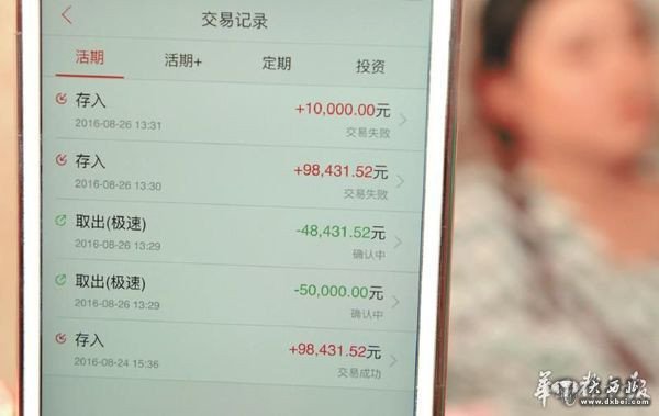 一直到26日下午1点过,还在试着努力把钱转回的王思慧,发现显示的余额突然变为“0”了。“前一分钟看着都在,一下子又全都没有了。”她立马点开交易记录查询,有两笔“极速”取出记录,在26日下午1点29分进行的,分别是5万元和4万8千多元。