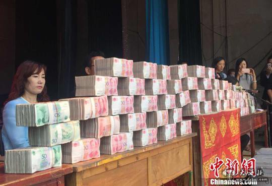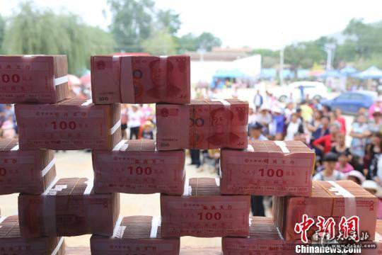 中新网兰州8月28日电 (记者 刘玉桃 魏建军)27日,甘肃临洮县机场村广场,围满了前来排队领钱的村民,村支书边国胜向村里的80余户农民现场发放种植树苗分红现金560万元,最多的农户领到10万元分红。