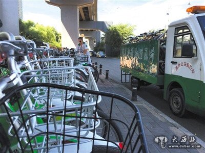 记者发现,这种车架子旁临时堆放自行车的情况并不少见,尤其是用车量大的点,几乎都有这种现象。辛师傅称,车辆数比车架子数要大很多,停不下的车只能临时放在旁边,如果哪里需要车,总调度也会电话通知他们调配。