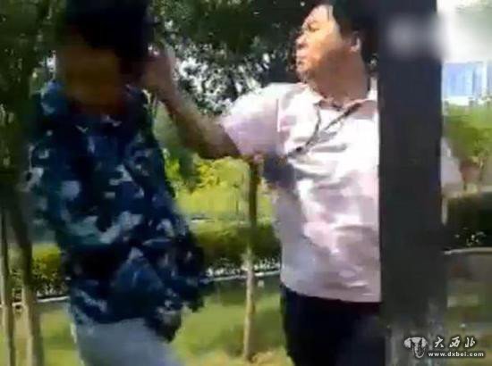 时长1分24秒的视频显示,在校园道路上,一名中年男子拦住多名身穿军训迷彩服的男学生,后对一名尚未穿好迷彩裤的男生进行多次掌掴及脚踹,打人过程中该男子还有爆粗辱骂行为;随后,该男子又对其他几名站着的学生进行掌掴。