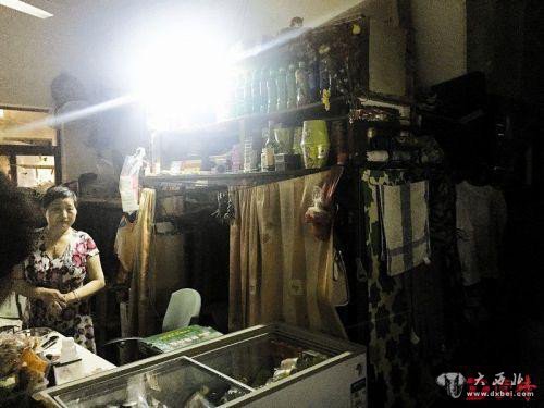 走进登良花园,该小区大门口随处可见招租的启事,有的写着床位招租,有的写着包月招租。根据之前排查的情况,执法人员进入小区的其中一栋楼,在一楼的一间三房两厅的房屋里,由于窗户都被挡住了,室内光线昏暗,借助手电筒的灯光,走进房间后,让所有人惊讶的是,这个三房两厅房屋中竟然有一个小卖部,还有货架等,其中物品随意摆放,电线和电路板随意丢弃。
